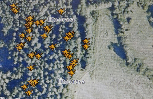Metsäammattilaisten kartoille ladataan säännöllisesti uudet tiedot liito-oravahavainnoista. Vanhat merkinnät eivät kuitenkaan häviä, vaikka alueella ei enää olisi liito-oravaa.
