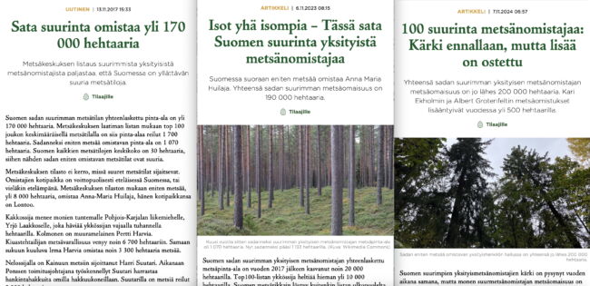 Lisää aiheesta: Isot yhä isompia – Tässä sata Suomen suurinta yksityistä metsänomistajaa