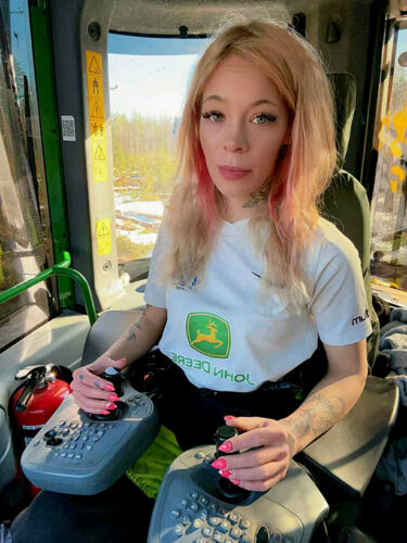 Pesonen ei tunne metsäkonealalta muita naisia kuin somen kautta, mutta juuri omilla some-kanavillaan hän haluaa rohkaista naisia alalle.