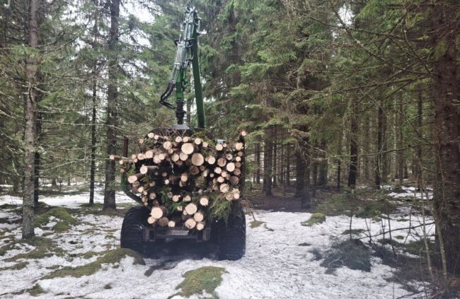 Pieneltä näyttää 12t metsäkärry ammattimiesten ajouralla. Ei tarvitse leventää, eikä kyllä harventaakaan ennen päätehakkuuta.