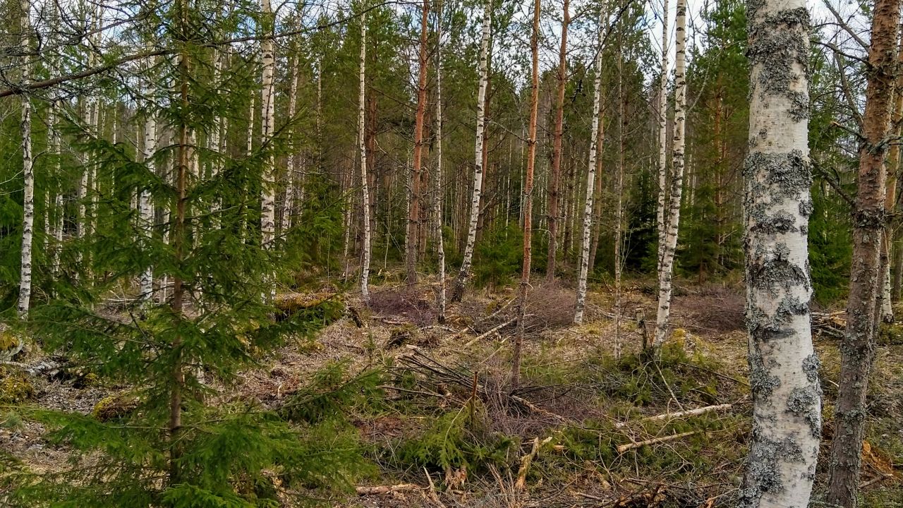 Keskustelussa energiapuuharvennus-osiossa jo pyydeltiin kuvia ”enskastani”. Noin 20v. päävaltapuu rauduskoivu, siementynyt siemenpuilla, hirviltä säästynyt hiukan istutettua mäntyä, kuusi luontaista.