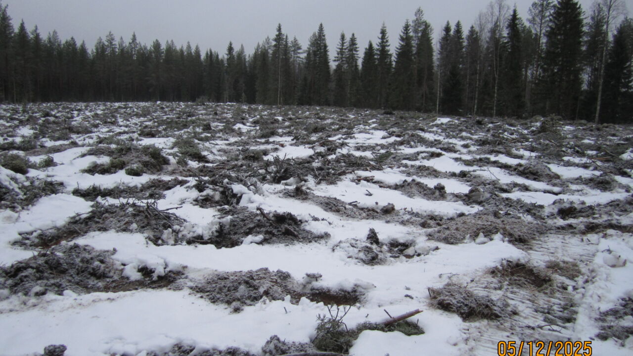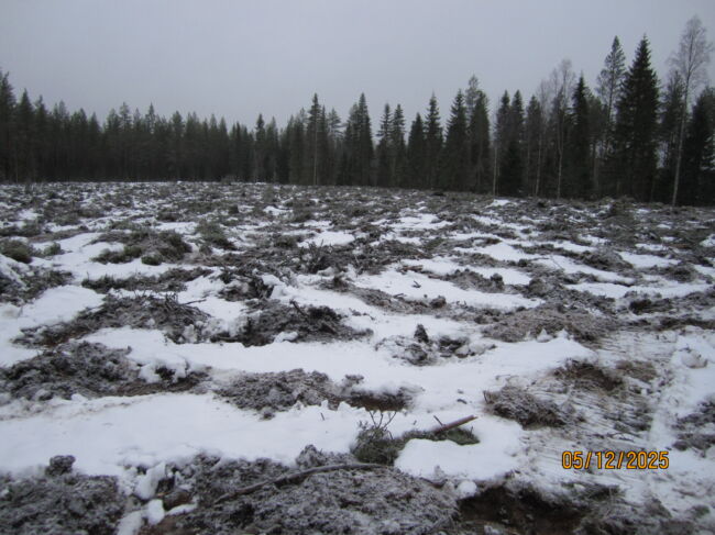 Muokkaus marres- joulukuussa. Kuvassa kuivahkonkankaan laikutus, kuntta pois ja matala laikku.