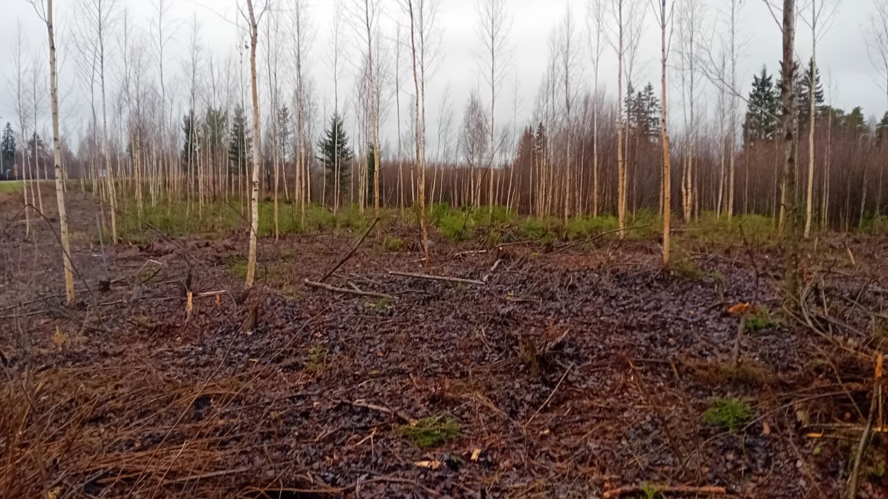 Tuollainen. Harvennettu risut pois tela-alustaisella pikkukaivurilla. Jäävä puusto yli puolet hieskoivua, pituus 7-8m d 1.3 8cm. Runkoluku 500-600 kpl/ha.