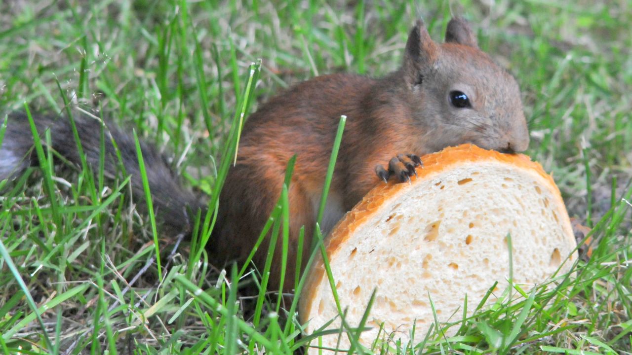 Oli tarkoitus mennä tervehtimään variksen poikia mutta tuli orava vastaan. Annoin leivän hänelle?