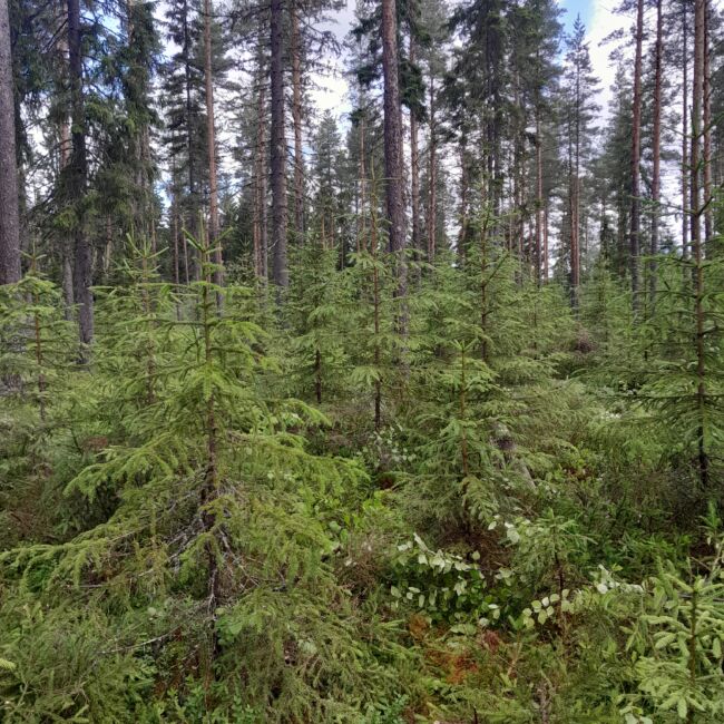 Juu minullakin oli hyvän kokoinen ala tuollaista, sopivan kostea paikka oli taimettunut ja kasvanut hyvin, siitä oli vissiin joku isompi puu kaatunut tuulessa, niin oli saanut vähän valoakin. Onnistuttiin hakkuusakin säästämään taimet. Vuosi hakkuun jälkeen oli kaikki kuolleet, oli paikka muuttunut ympäristön hakkuun takia liian märäksi. Ei olllut sitä puustoa enää haihduttamassa. Kai siihen hieskoivu tai leppä aikanaan kasvaa kohopaikkoihin. Seuraavassa päätehakkuussa on tietysti se samanlainen aliskasvu kuusentaimikko, minä en sitten ole kyllä tekemässä ratkaisua, ojitusmätästys olisi ollut oikea tällä kertaa.