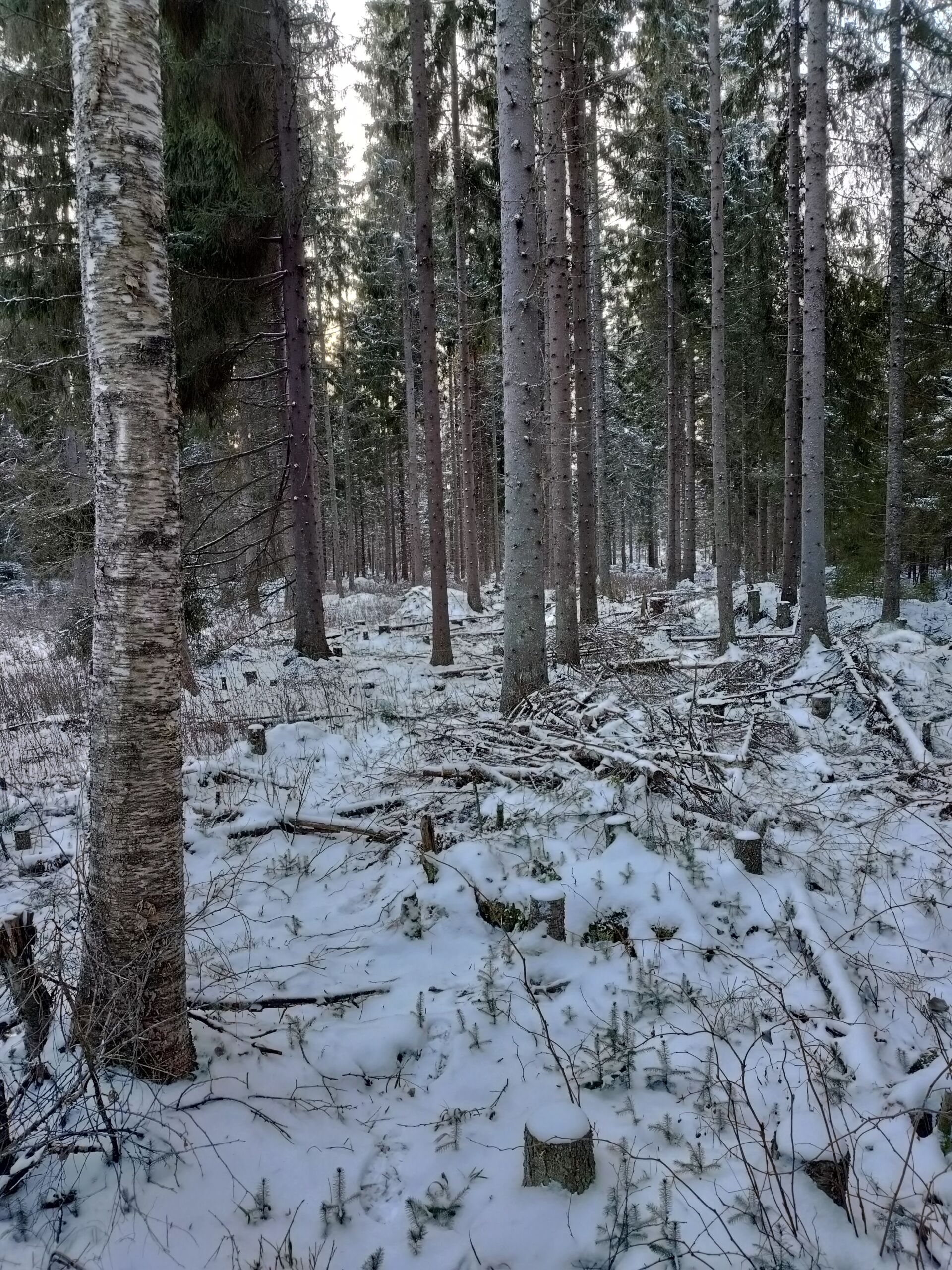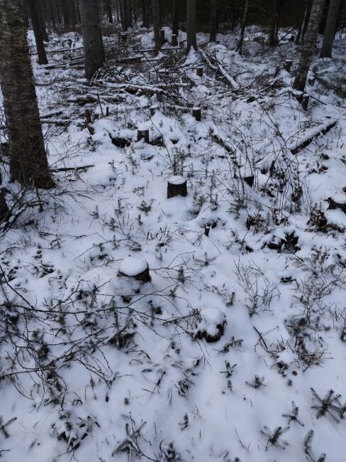 Eli kun koko kuvio täynnä luontaisia kuusentaimia, pituus 2-20 senttiä, voisiko tuon metsän hakata kerralla pois ja ajatella, että nuo lähtee kasvuun? Yksi kulma hakattiin, siellä puusto oli järeämpää, mutta taimetkin oli isoja,miehen mittaa. Siellä olemassa oleva taimikko kyllä tuhoutui melko tyysti, odottelen jätemätsän ja vattujen alle uusia taimia, paikoitellen niitä on. Mitta missä vaiheessa tämä pitäisi hakata, väljentäminen ei innosta, ihan pehmeä maa, ja puusto päätehakkuukypsää.