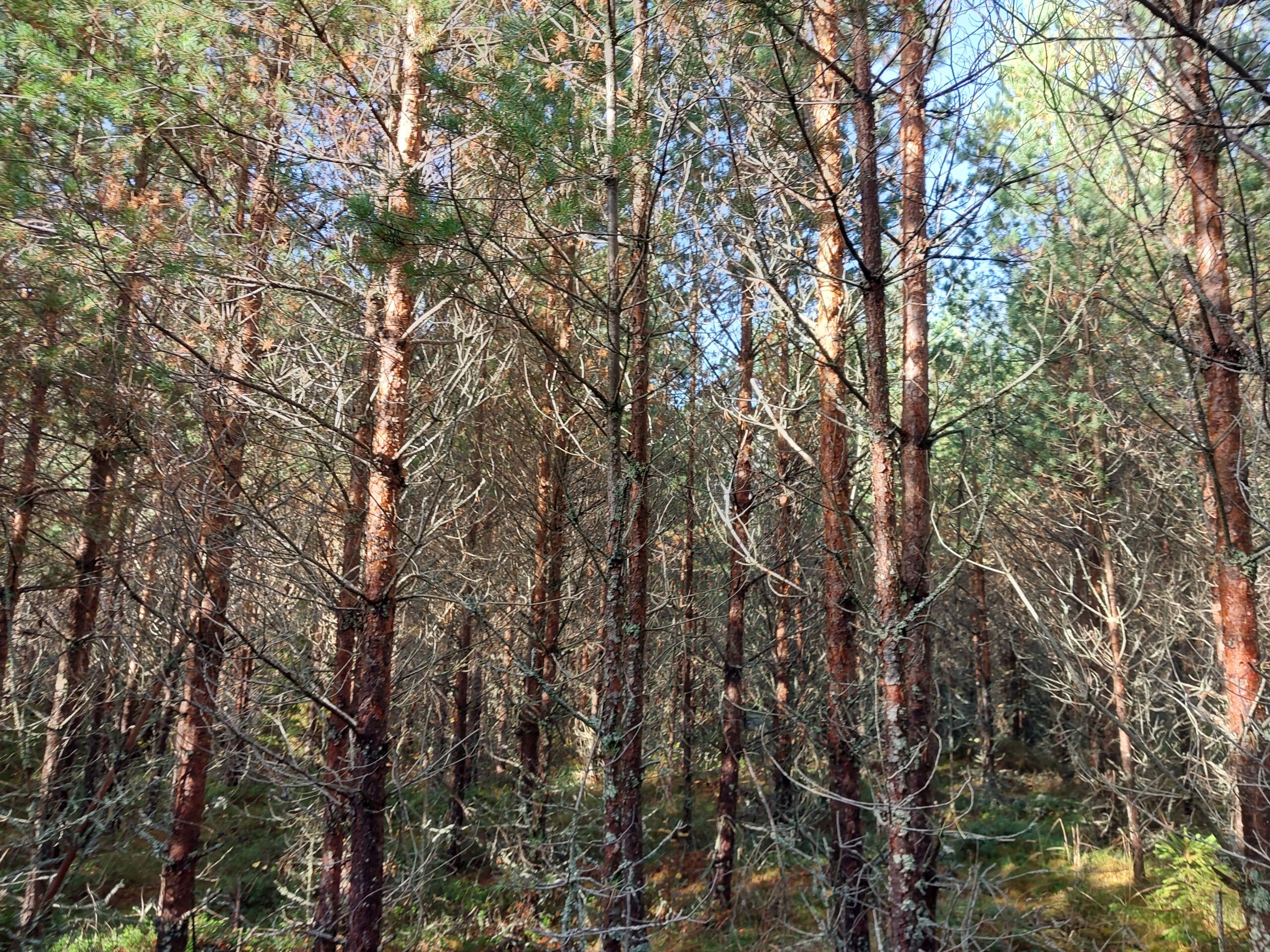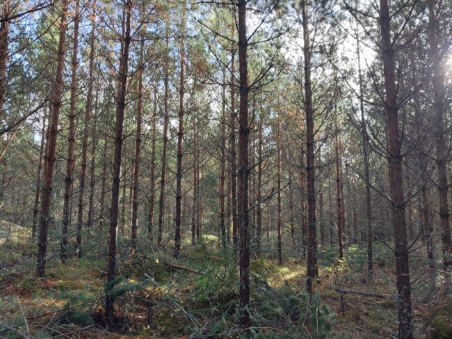 2002 käsin kylvämällä perustettu taimikko. 2016 tehty 1. taimikonhoito. 2025 toinen kerta. Olisi saanut olla muutaman vuoden aikaisemminkin. Pituus n. 9 metriä ja tiheys metka-ohjeelliseen 1500 runkoa hehtaarille. 5-7 vuotta kasvatusta ja ensiharvenus.