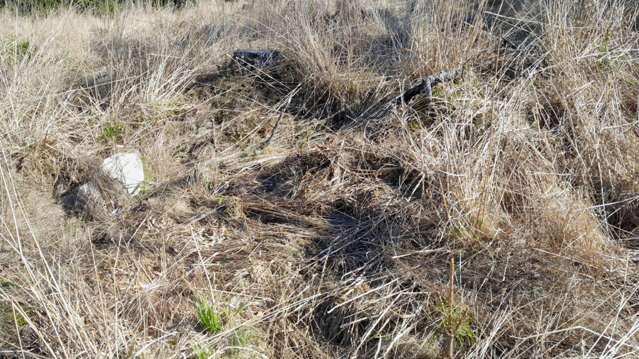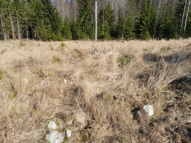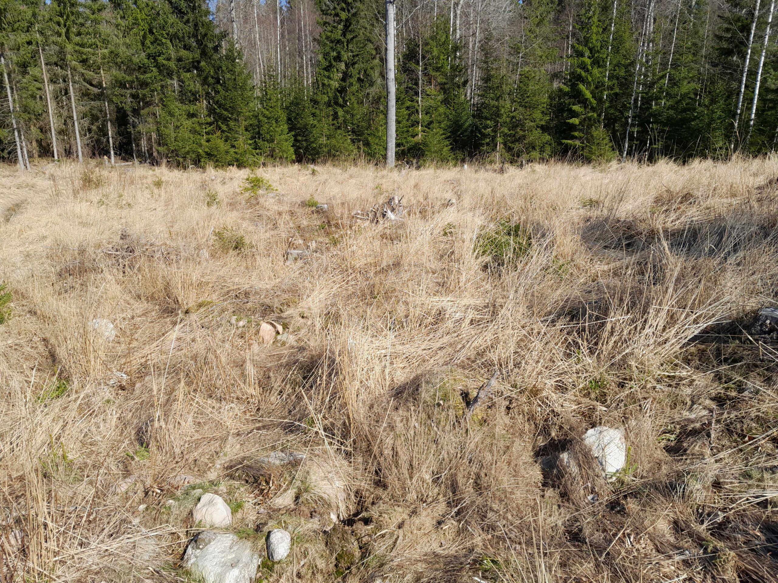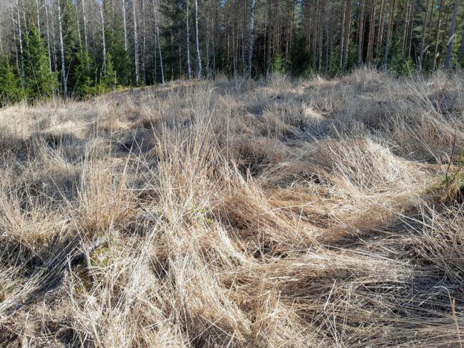 Jokohan olisi lupa käyttää glyfosaattia täydennysistutuksessa? Miehen mittainen heinikko ilmaantui kuviolle, vaikka siitä hakattiin täystiheä kuusikko. Alempana kuusta, kuvassa erottuvat ovat pääasiassa luontaisia eli istutustaimia isompia. Kuivemmassa rinteessä pitäisi olla myös mäntyä. Sorkkaeläimet viimeistelivät niiden kohtalon. Kuviolle tullessani pakoon juoksi muutama kauris ja löytyipä latvattomia kuusiakin, mikä ei tuolla palstalla ole normaalia.