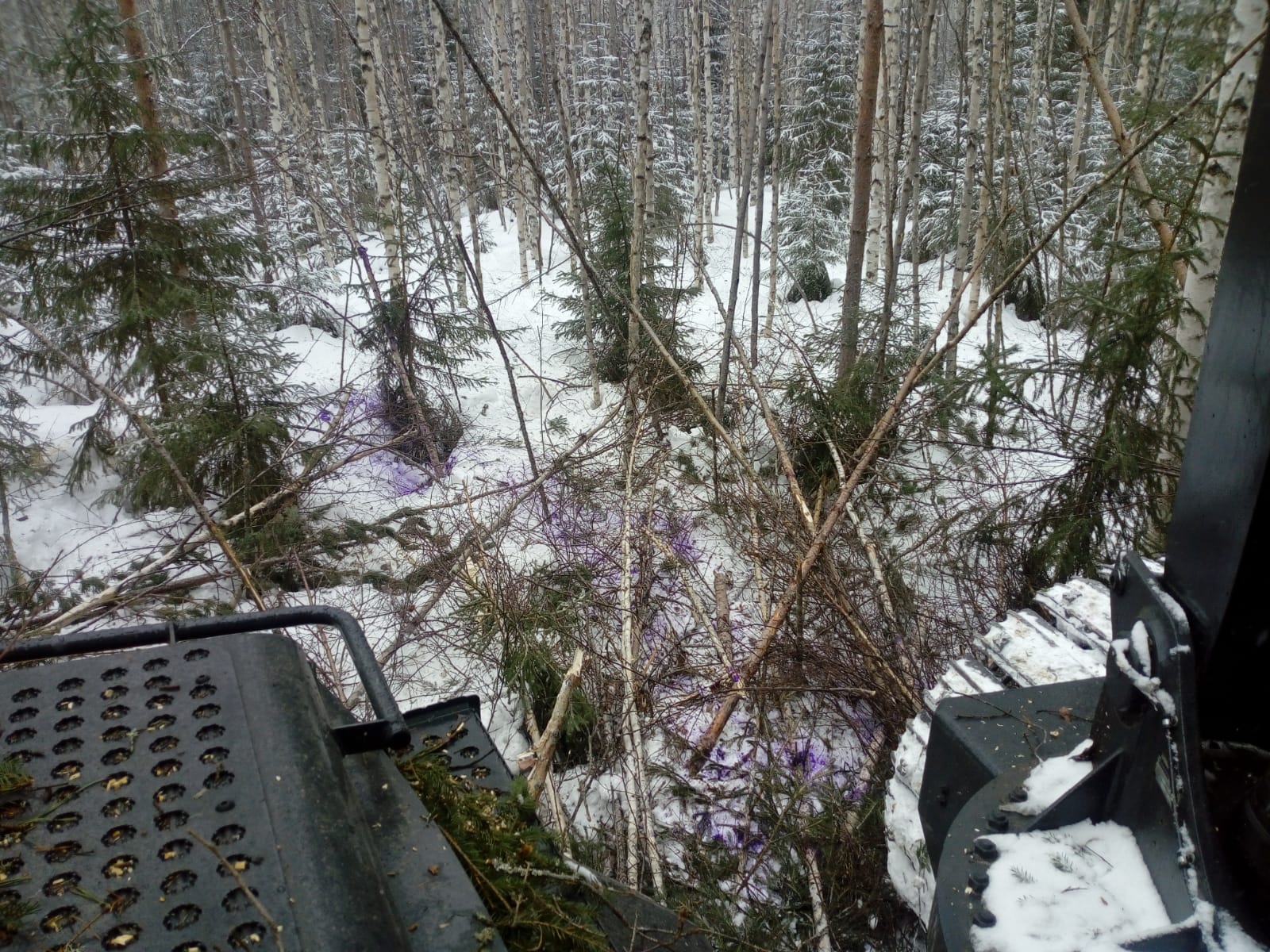 Tässä on annettu omistajalle aikaa tehdä raivaus . Kauppa on menossa vanhaksi ,mutta raivausurakkaa vielä riittäisi . Käsiteltävää vaihtelevissa olosuhteissa on ollut lähes 10 hehtaaria. Kelvollisesti raivattua metsää on suurin osa ,mutta kuvassa näkyvällä osalla ei ole ehditty ajatusta pidemmälle. Yritys kuitenkin hyvä.